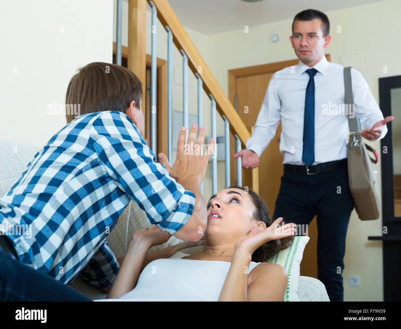 Husband Coming Home Finding His Wife Cheating Stock Image - Image of modern, les
