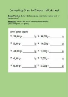 Converting Gram to Kilogram lvl2 worksheet