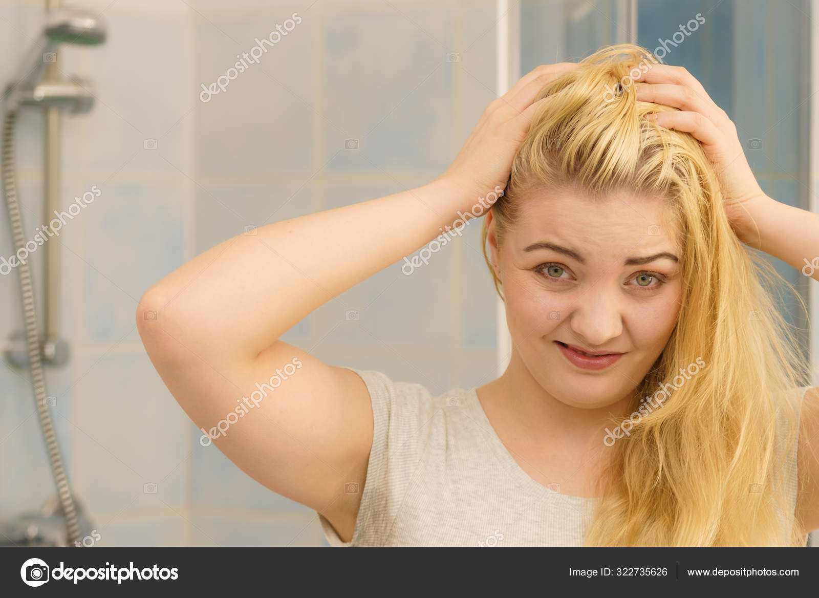 Женщина, имеющая проблемы с светлыми волосами - Стоковое фото © Anetlanda #32273